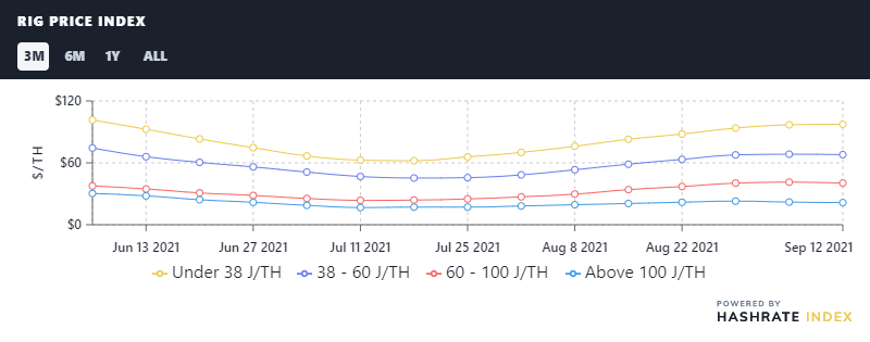 Rig price are cooling off. Every efficiency tier fell last week with the exception of new generation equipment, which was practically flat from the week before.
