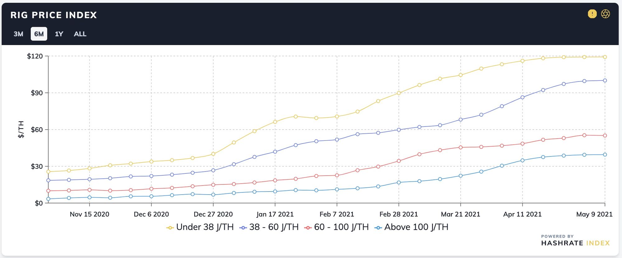 New-generation equipment stayed flat during the period, the first time we have ever seen this since gathering ASIC price. Across all efficiency classes, prices are up 0.5%.