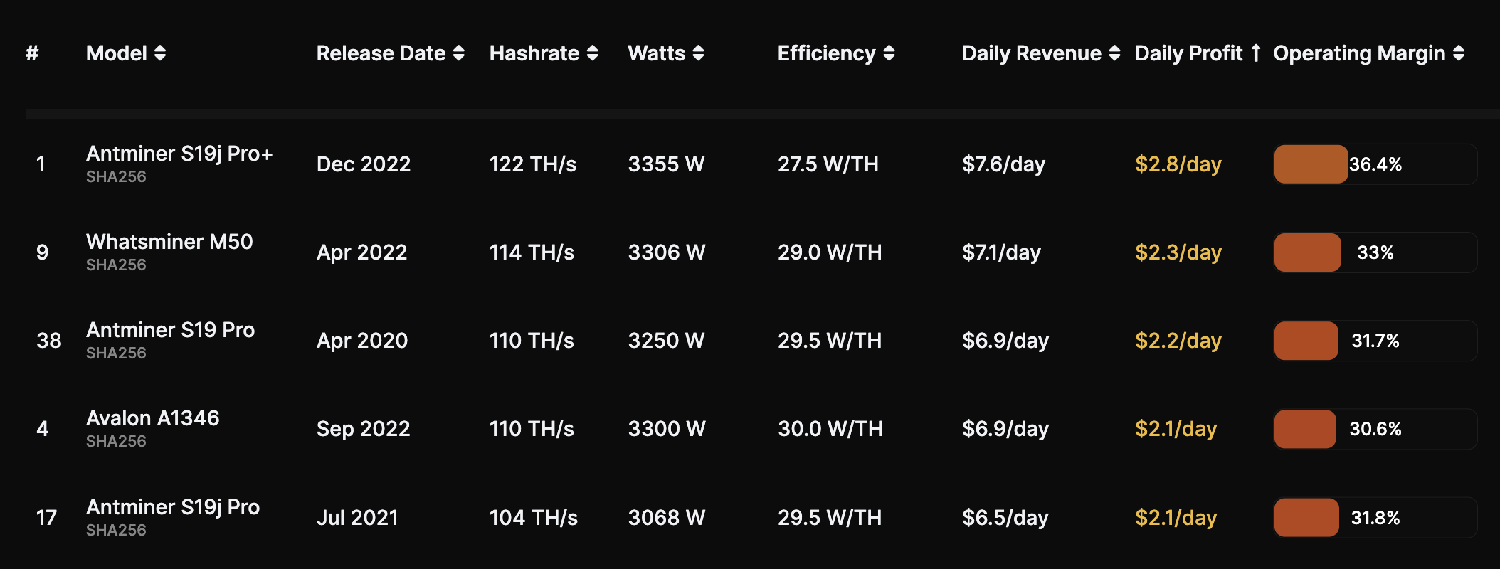 In addition to lowering their all-in electricity prices, miners will attempt to get more hashrate per unit of electricity consumed by improving the efficiency of their mining rigs. The miners with good access to capital will switch their older machines to newer models like the Antminer S19 XP. Others will underclock machines to improve efficiency.