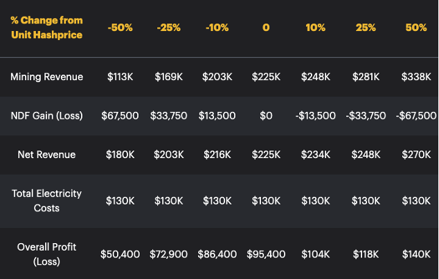 In all 3 scenarios the hedge that the miner put on helped them achieve revenue certainty for a given amount of hashrate. This certainty helps the miner with risk management, capital allocation, covering operating expenses and much more.