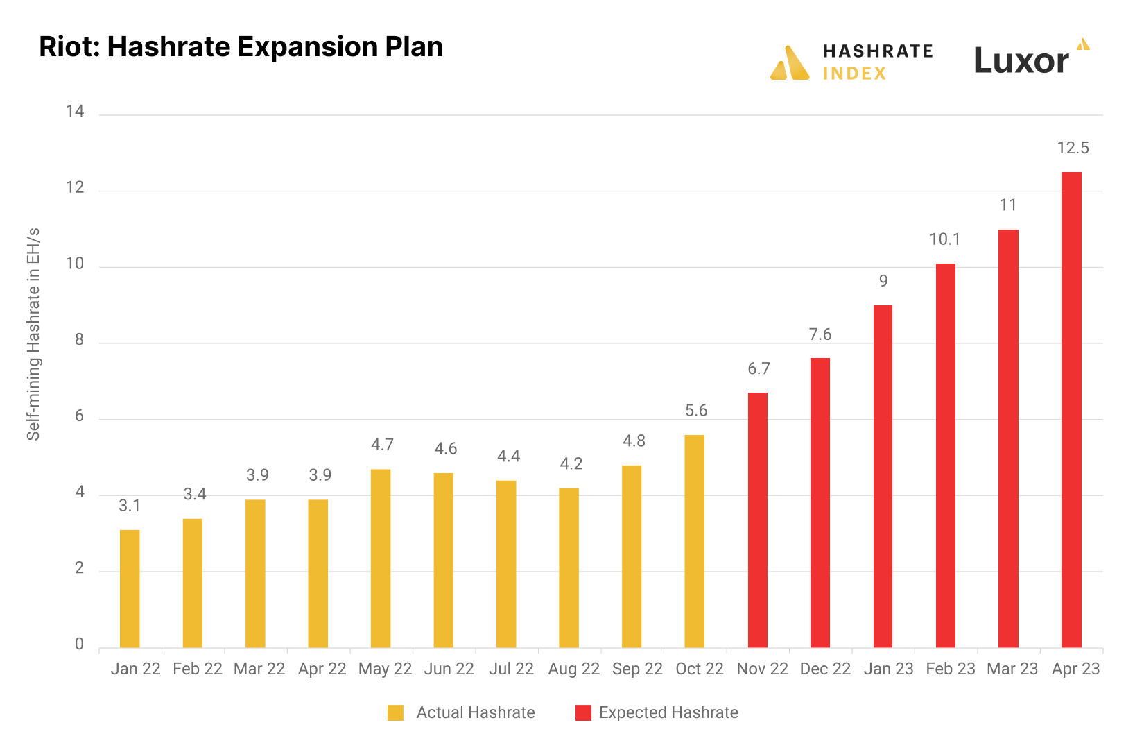 I'm relatively confident that Riot will be able to reach its hashrate goal. 12.5 EH/s goal by April 2023 represents only a 6.9 EH/s increase from today's level and is not too far-fetched. In addition, the company will also benefit from the 200 MW immersion-cooling hashrate boost.