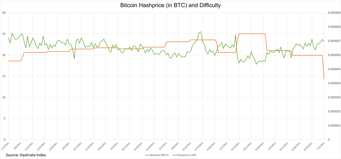We expect the reprieve in difficulty to bring a boost to miner profitability, and we anticipate a rise in Bitcoin’s hashprice to roughly $0.33 following this adjustment (though this is also contingent on price action and could wane if bitcoin’s price continues to decline).