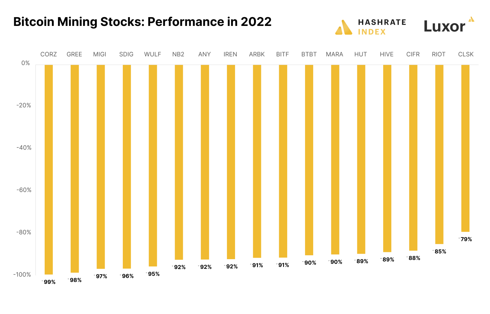 All bitcoin mining stocks performed horribly in 2022. The “best” performer was