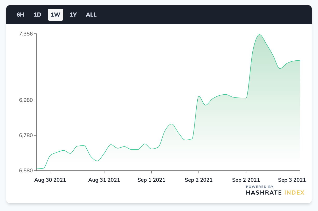 Hashprice: Bitcoin’s hashprice was juicing at the beginning of the week thanks to the weekend pump to $52,000, just breaking $0.38/TH before the price plummeted on the day of El Salvador’s adoption of bitcoin as its national currency, which in turn dropped profitability.