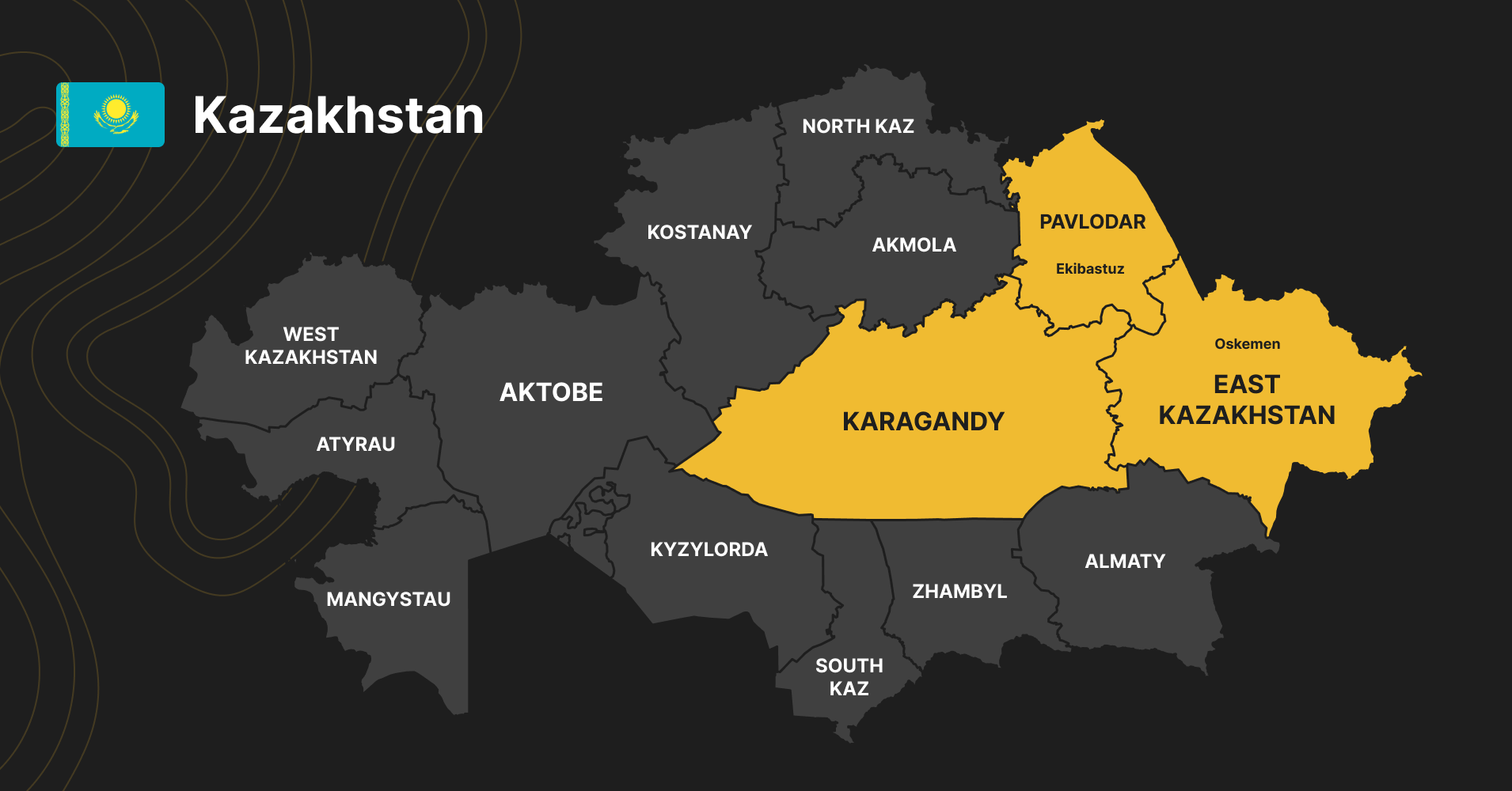 Kazakhstan is a massive country with vast distances. Most electricity generation is localized in a handful of industrial cities in the northeast of the country. These electricity generation and transmission hubs have also attracted the most mining capacity. These are places like Karaganda, Pavlodar, Oskemen, and Eikibastuz.