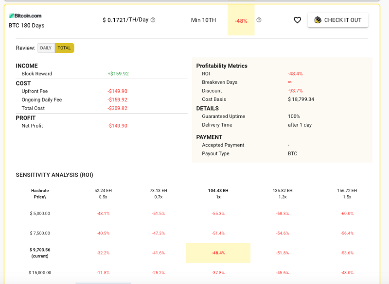 This is a big red flag in any investment. No one can predict the future (especially a cloud mining company) so it is unethical to put out an aggressive return profile. Just like public CEO’s shouldn’t put out a share price target, cloud mining companies shouldn’t put out an expected IRR.