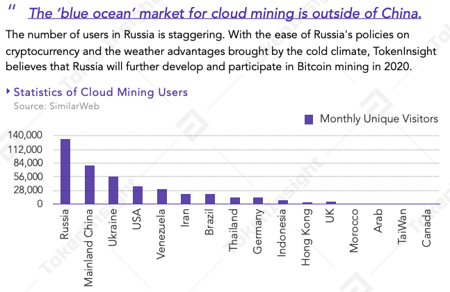 According to TokenInsight buyers in Russia, China and the Ukraine make up the majority of cloud mining volume.