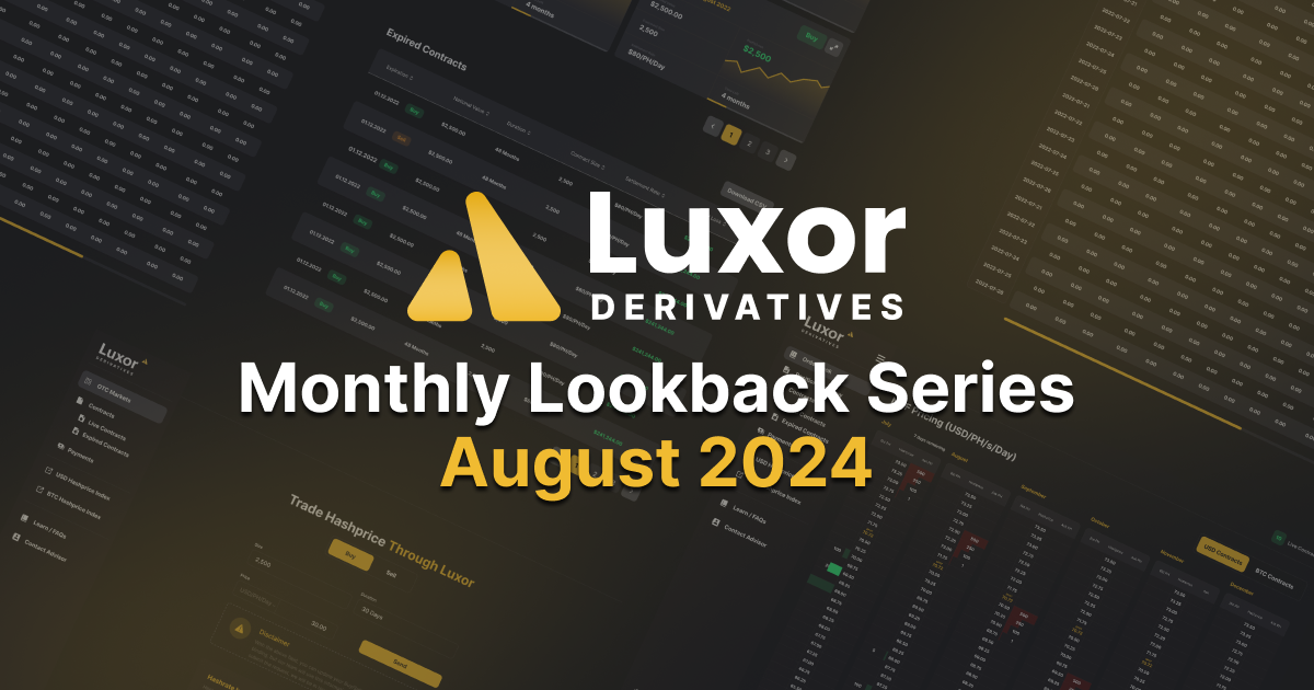 We are excited to introduce Luxor’s Derivatives Monthly Lookback Series: a monthly market deep dive into hashrate forward market activity. As hashrate markets mature and become increasingly sophisticated, our goal is to ensure that Bitcoin miners are equipped with the knowledge and tools they need to effectively manage their operations and investments.