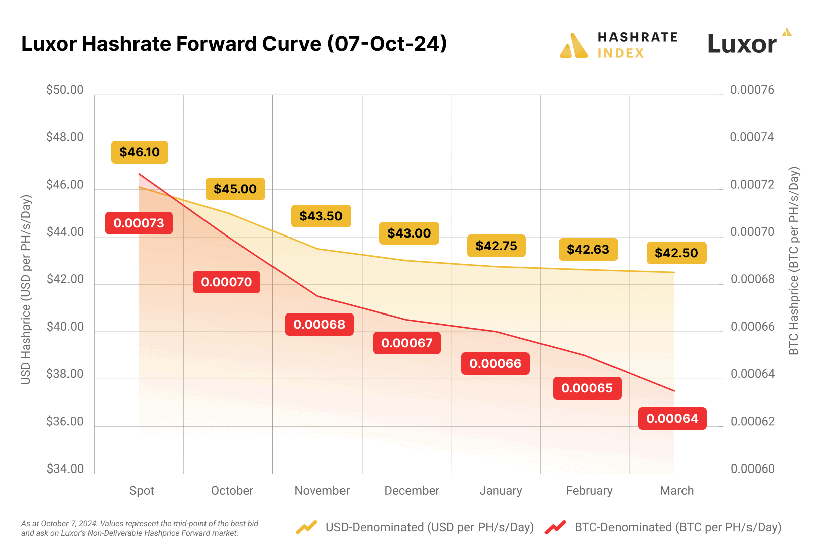 Note: all values shown in figures represent the midpoint of the best bid and ask on Luxor's Non-Deliverable Hashprice Forward market.