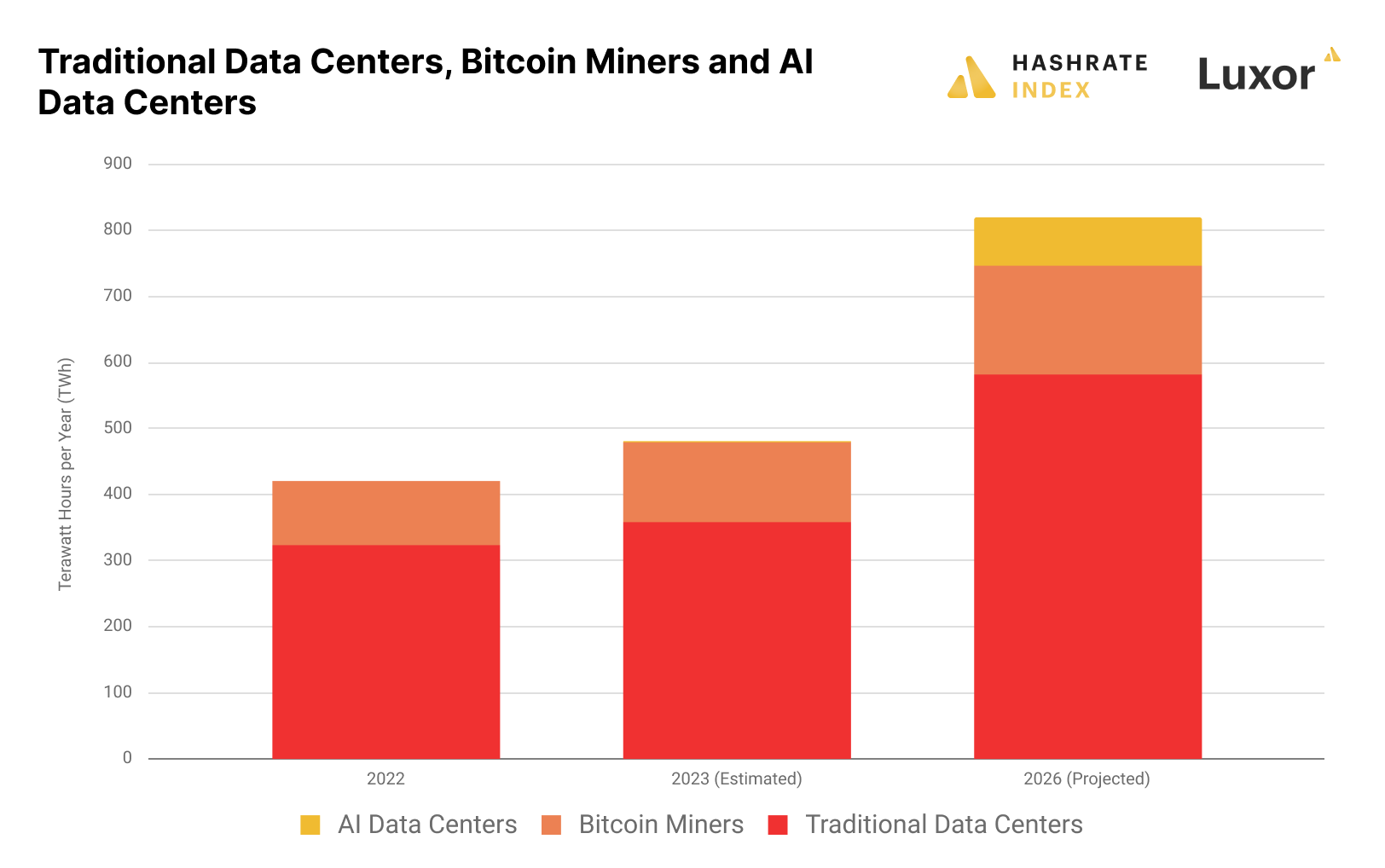 AI datacenters consumed relatively small amounts of energy in 2023 compared to other data centers, but that will change over the coming years as AI demand ramps up and new AI data centers come online around the world. Bitcoin miners will compete with these data centers for power resources, something that could inhibit Bitcoin’s global hashrate growth.
