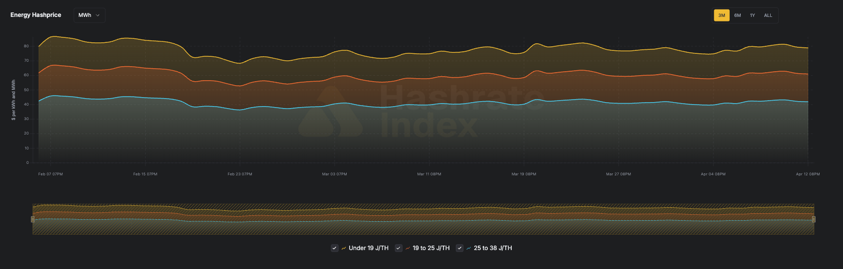 - Under 19 J/TH fleets — $79 per MWh