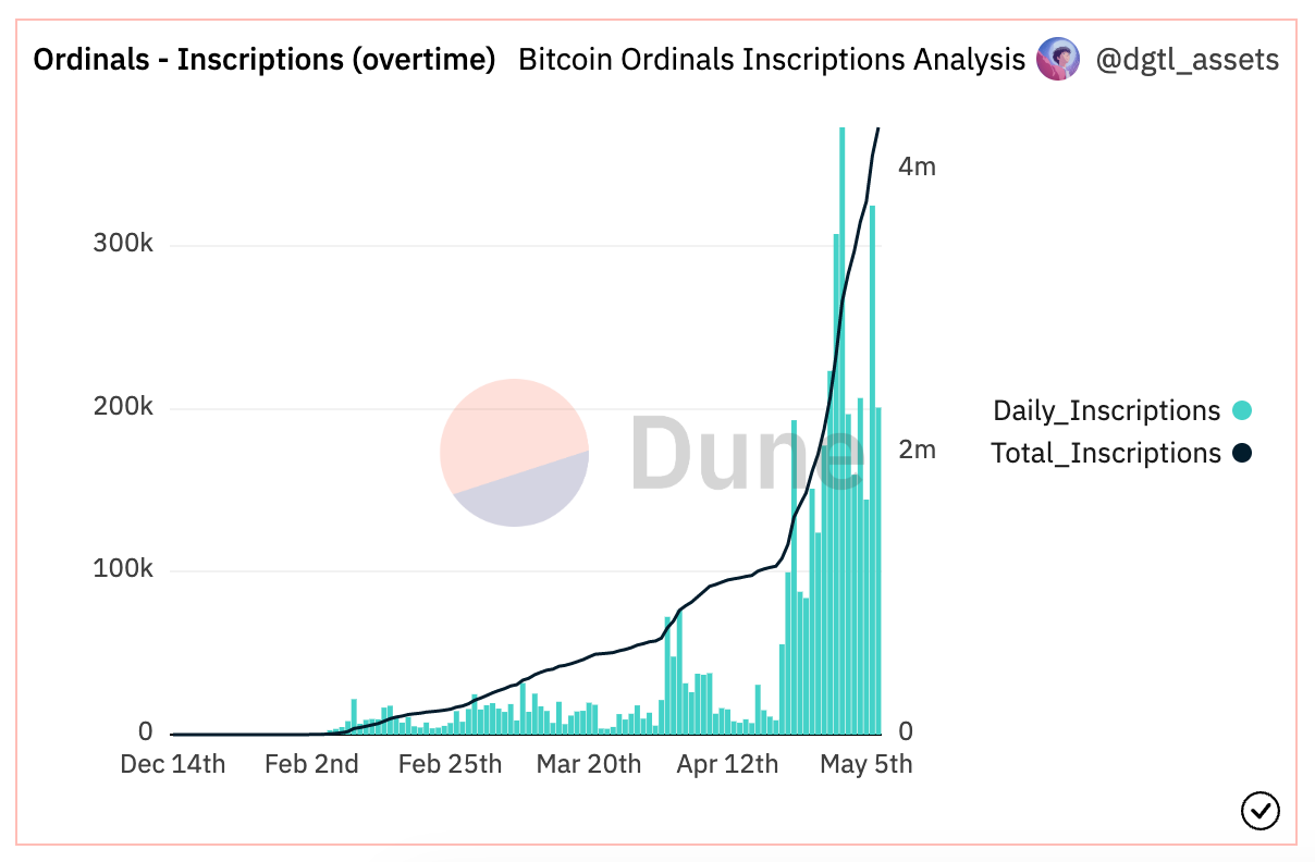 To illustrate this with the chart below, the largest inscription volume to-date occurred on May 1 and the second largest volume occurred on May 5.
