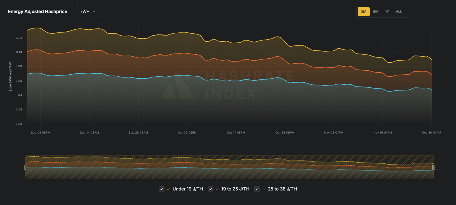 - Under 19 J/TH fleets — $90 per MWh
