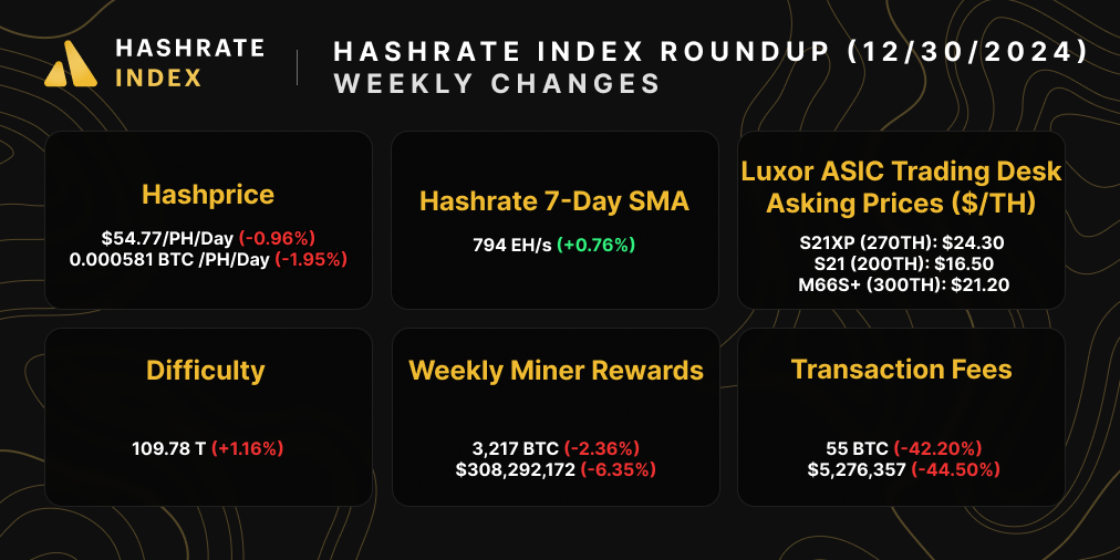 Hashrate Index Roundup (December 30, 2024)