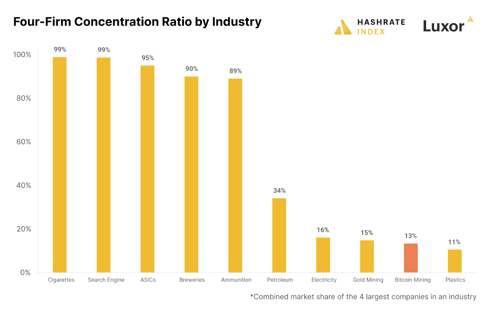 Bitcoin mining is one of the most fragmented industries in the world, consisting of thousands of players worldwide ruthlessly competing for scarce block rewards. Still, a recent consolidation trend has led some to wonder whether bitcoin mining will remain decentralized or follow the destiny of many other industries consolidating into oligopolies or monopolies.