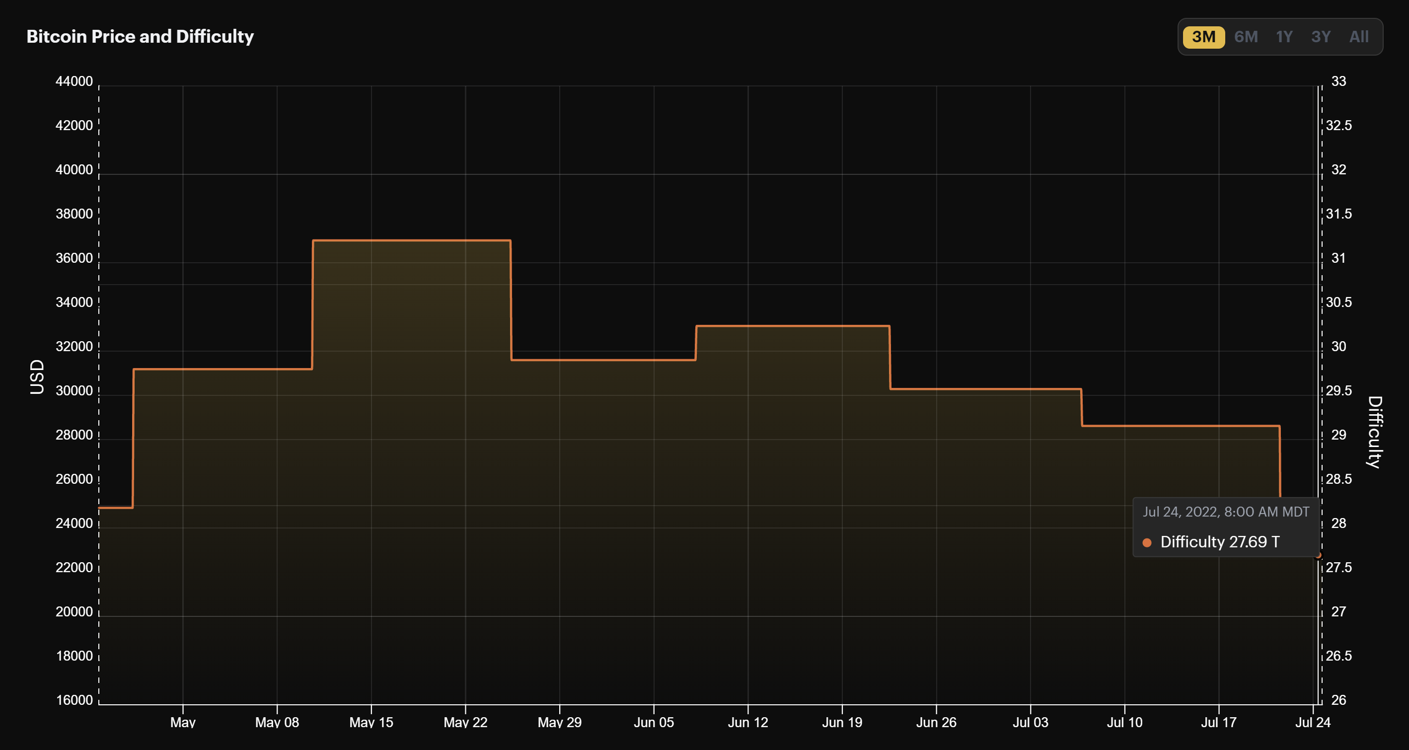 For the first time since the summer of 2021, Bitcoin's network has experienced 3 downward difficulty adjustments in a row. The last adjustment, a whopping -5%, was the largest since last summer's procession of negative adjustments.