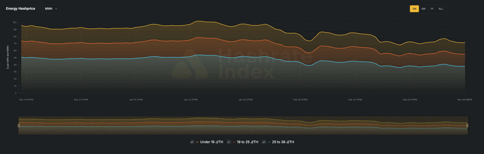 - Under 19 J/TH fleets — $72 per MWh