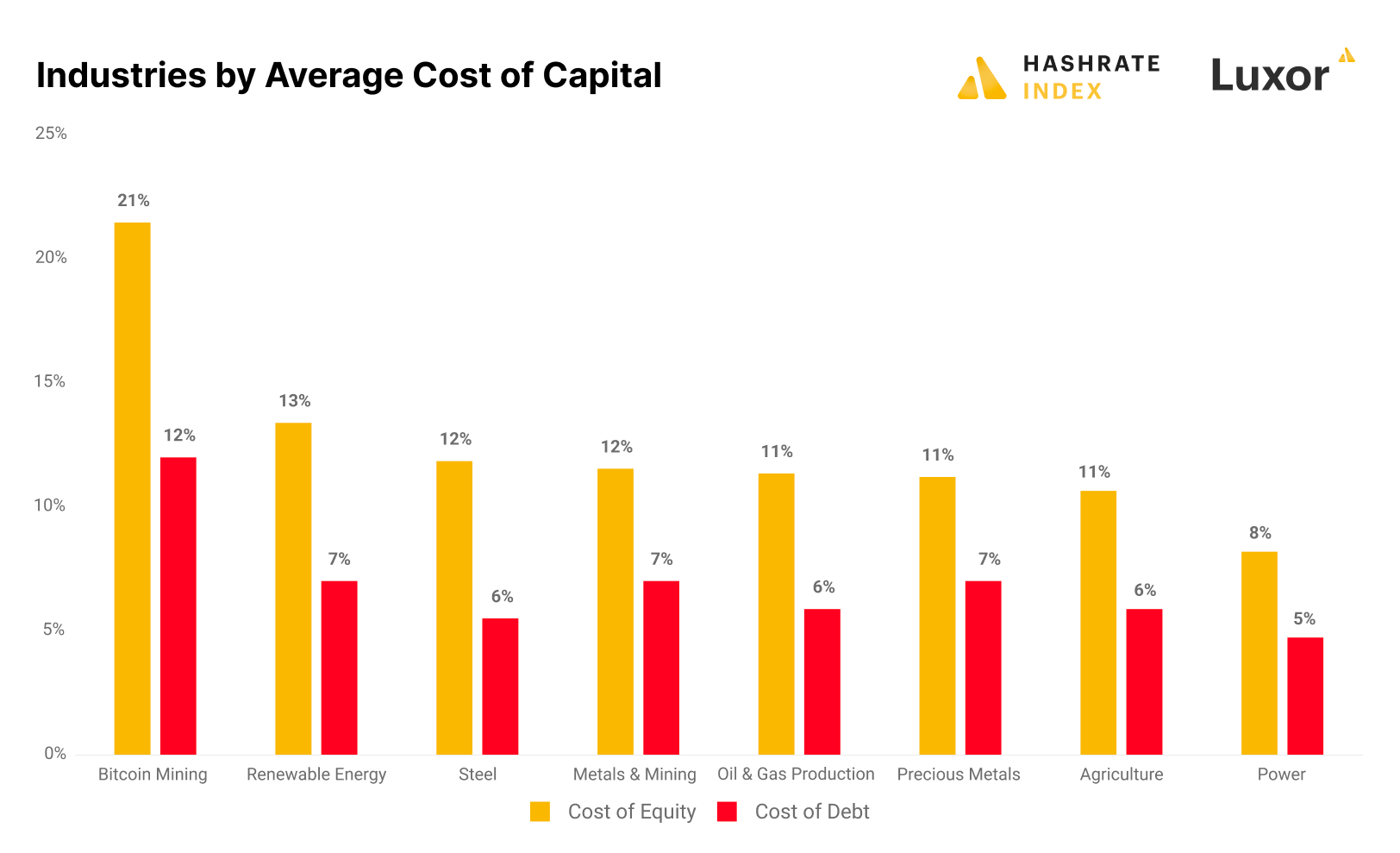 Bitcoin mining is a capital-intensive business where having access to low-cost capital is critical for the success of an operation. Unfortunately, bitcoin miners’ cost of capital is significantly higher than that of companies from comparable sectors. This high cost of capital limits miners’ growth prospects and eats into their net incomes.