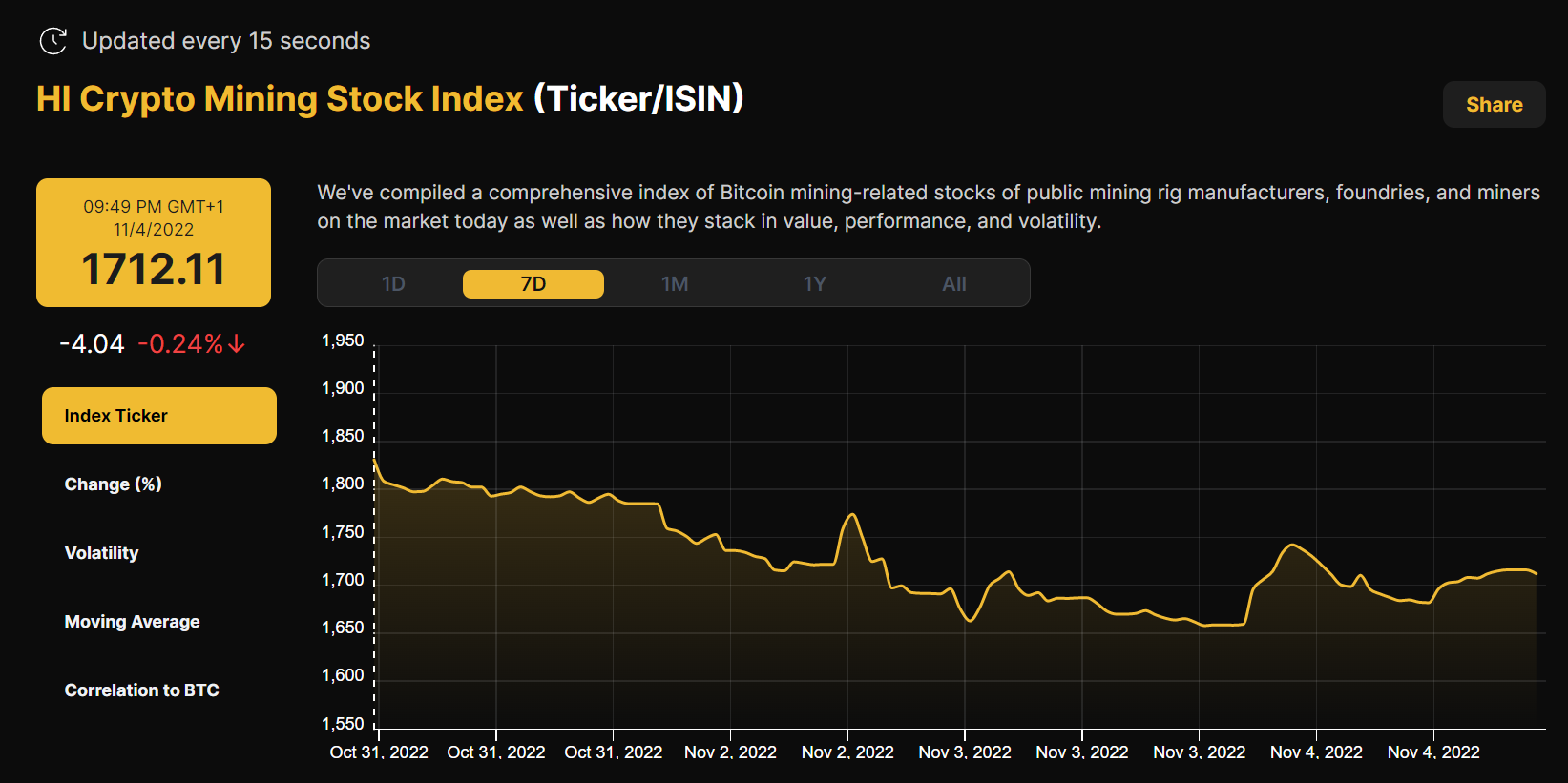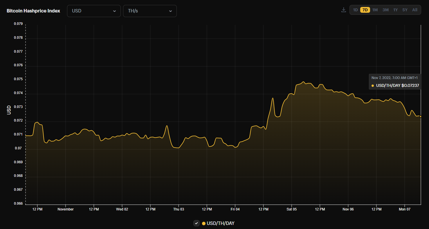 Hashprice Index (November 7, 2022)