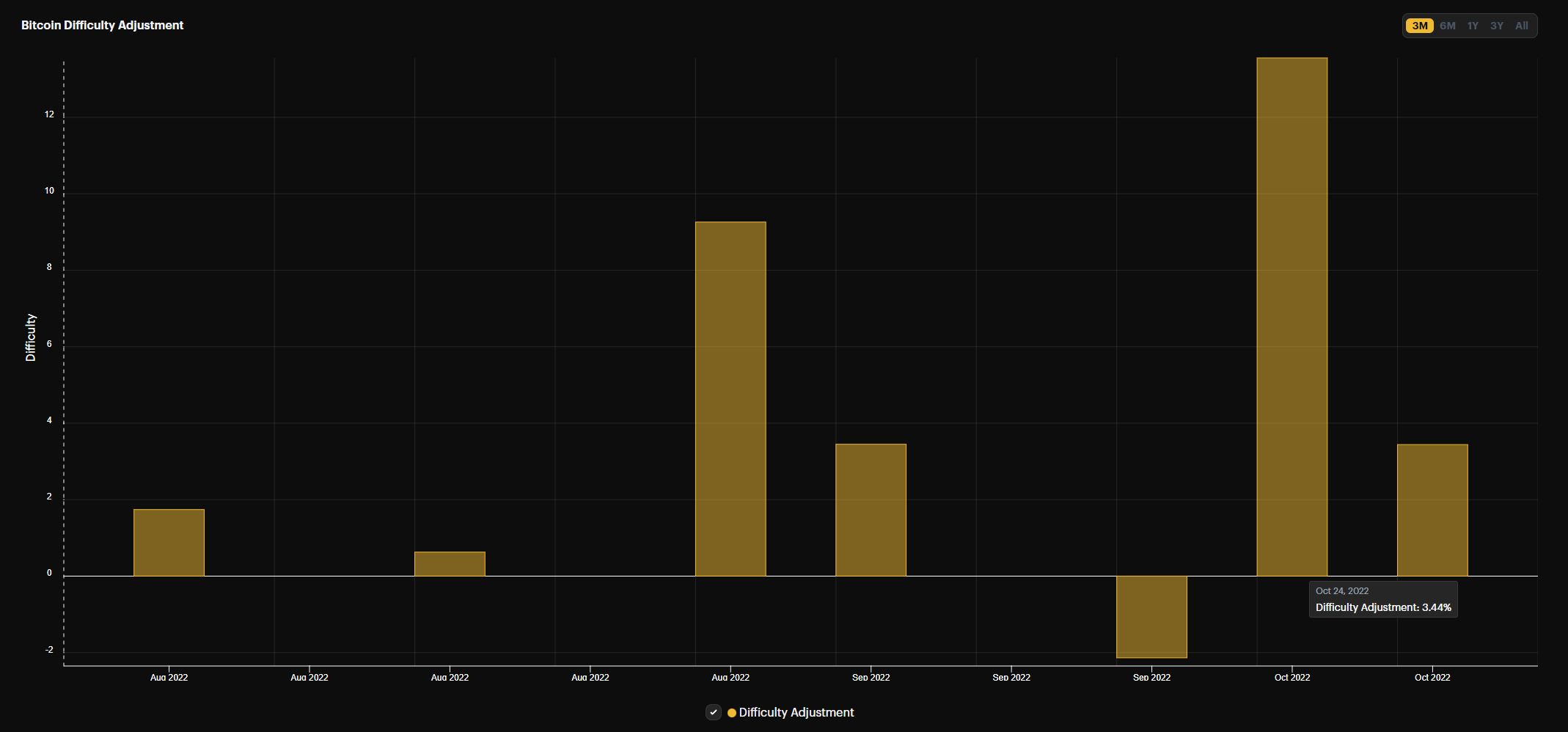 Bitcoin underwent a 3.4% upwards difficulty adjustment last Monday. Although the trend of upwards adjustments continues, it was still a much less significant upwards adjustment than the 13.6% increase on October 10th.