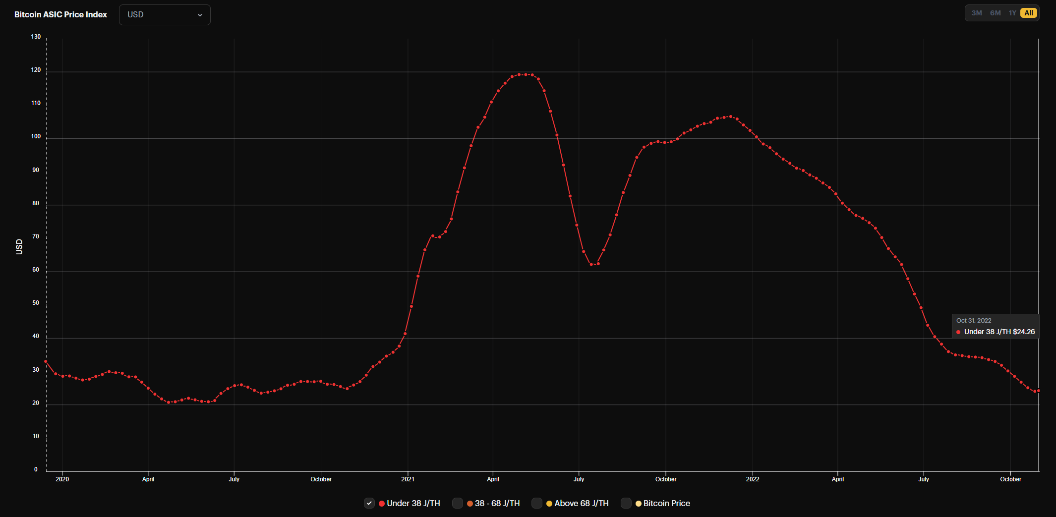 Bitcoin Mining ASIC Price Index (October 31, 2022)