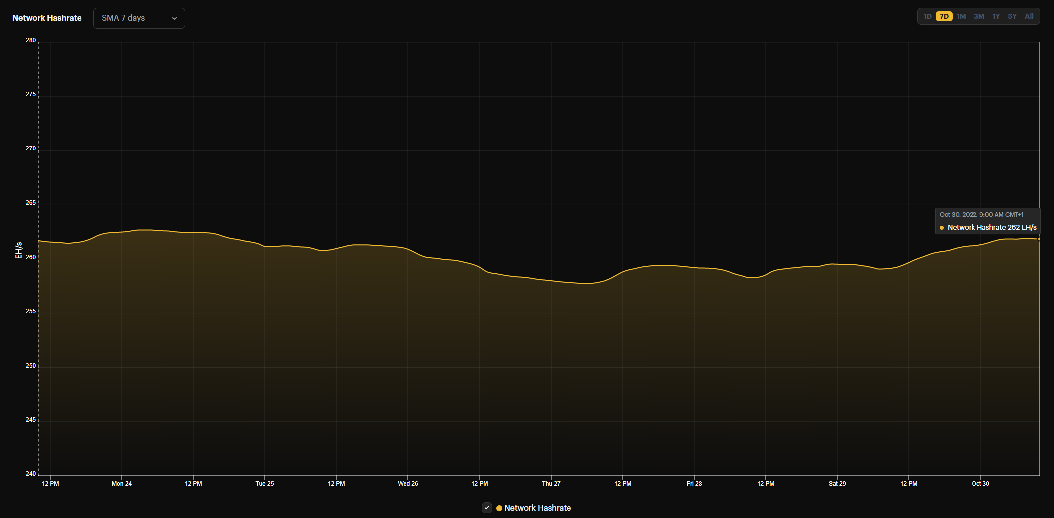 - Hashrate: 259 EH/s (-1.5%)