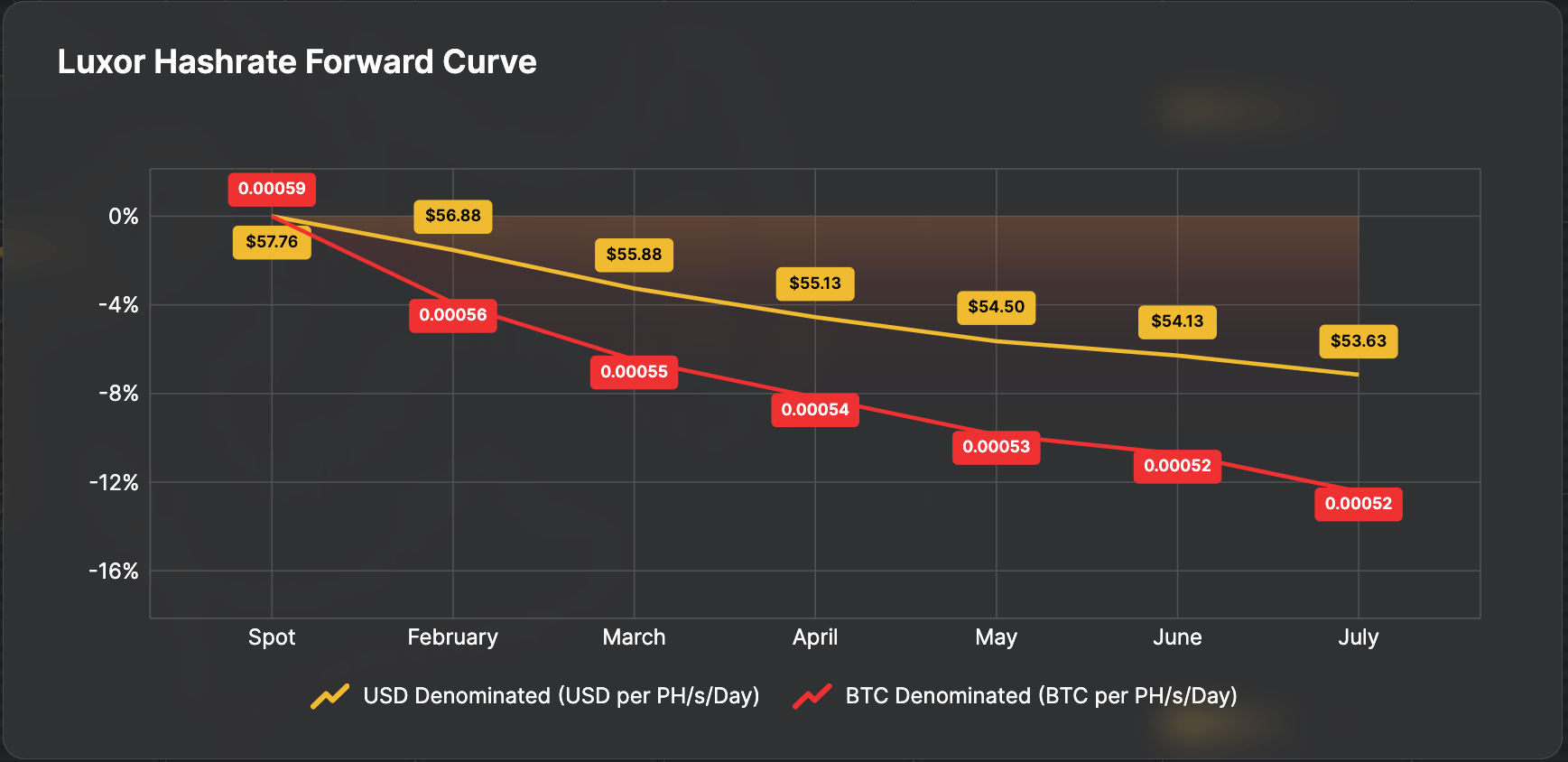 Note: all values shown in figures represent the midpoint of the best bid and ask on Luxor's Non-Deliverable Hashprice Forward market.