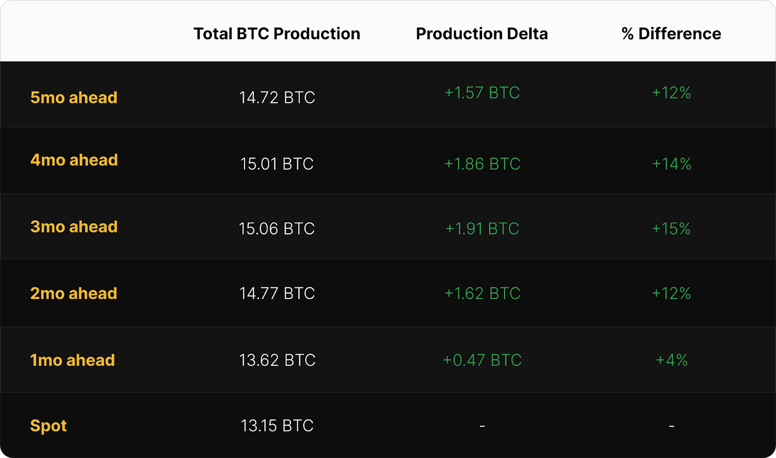 Note: these figures are strictly for demonstration purposes and exclude fees and bid/ask spreads associated with entering into hashrate forward contracts.
