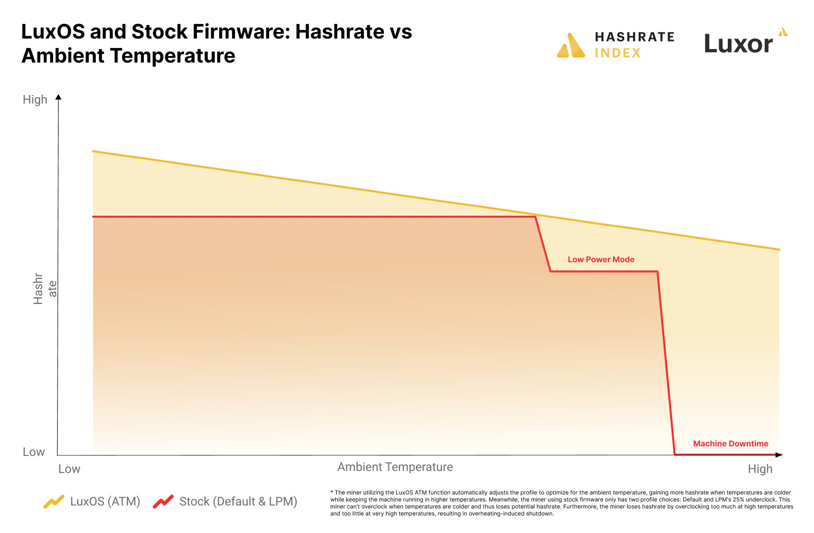 Meanwhile, by dynamically adjusting the machine’s profile to optimize for the current ambient temperature, LuxOS’ ATM function prevents overheating-induced shutdown and helps miners squeeze out their maximum hashrate potential, given the temperature constraint.