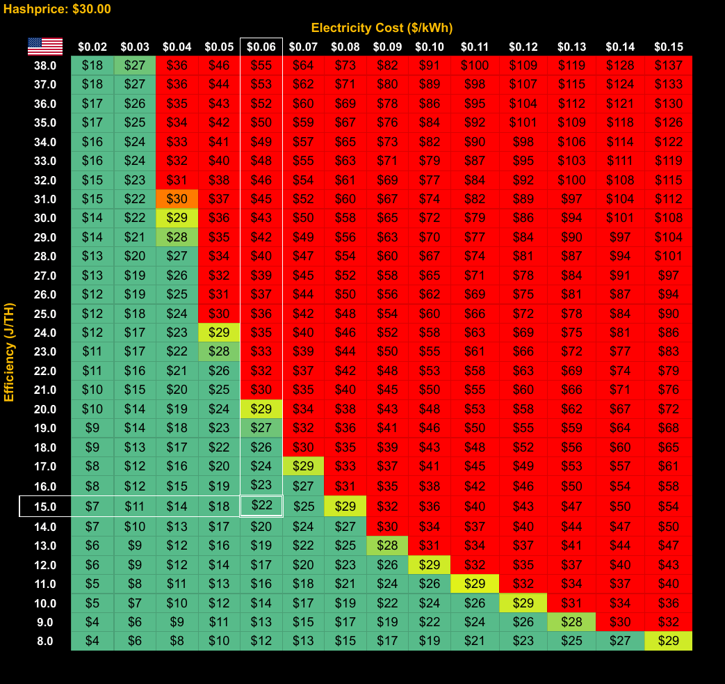 However, that same operation would be underwater with a 33.3% decline in USD hashprice.