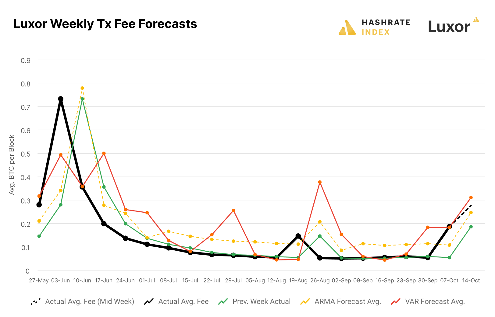 Q3 Lookback: Bitcoin Transaction Fees & Hashrate Index’s Weekly Forecasts