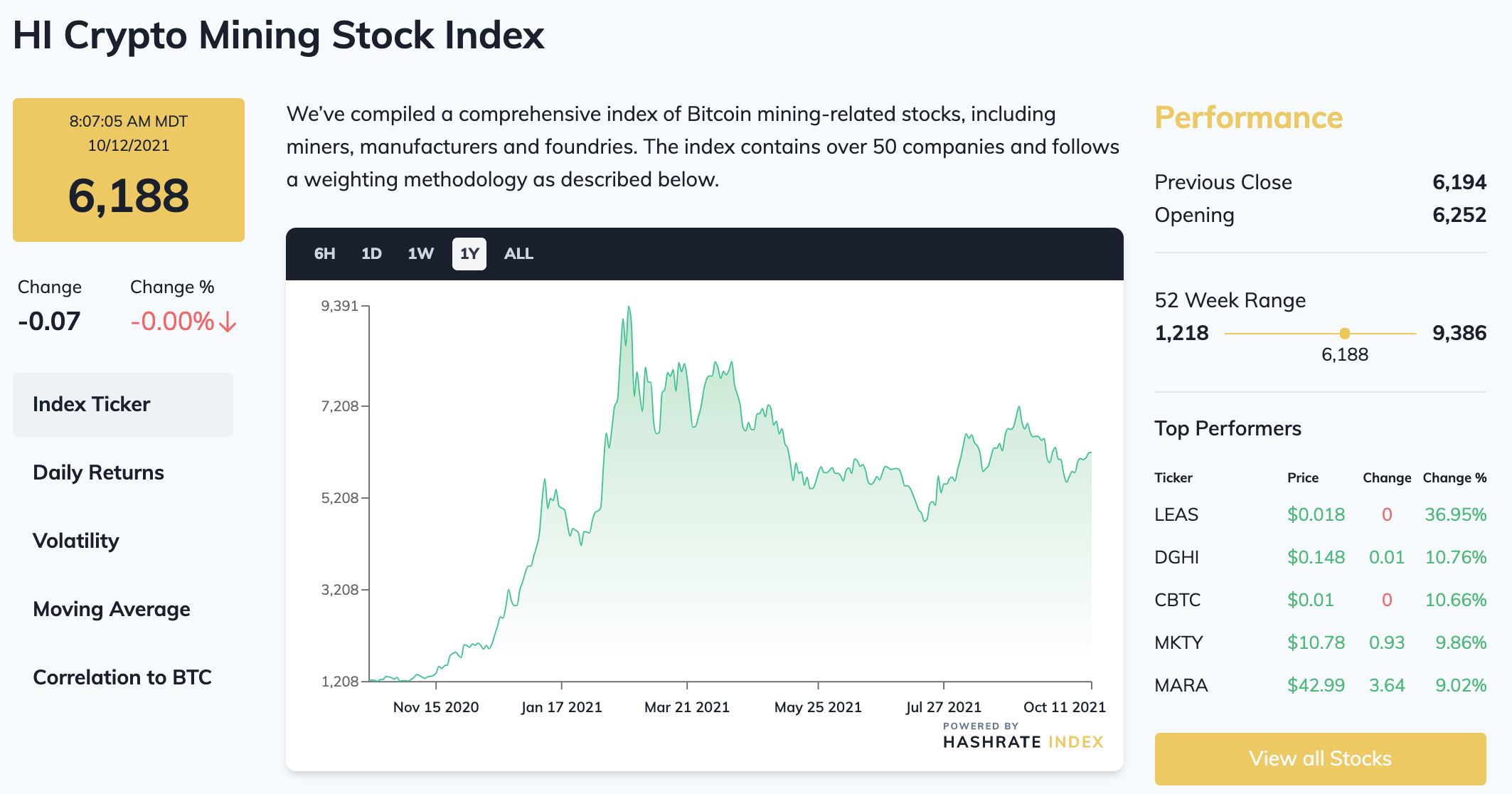 Crypto Mining Stock Index: Mining stocks are on the up-and-up once again after falling for most of September, and our index is up 5% over the past week to $6,188.