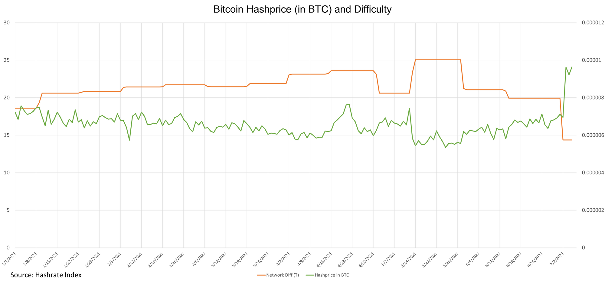 Hashprice: Bitcoin’s largest adjustment ever, a 28% drop, gave miners a 30% boost to profitability. Hashprice rose immediately after the adjustment from $0.23/TH to $0.33/TH. At the time of this newsletter, hashprice is $0.31.