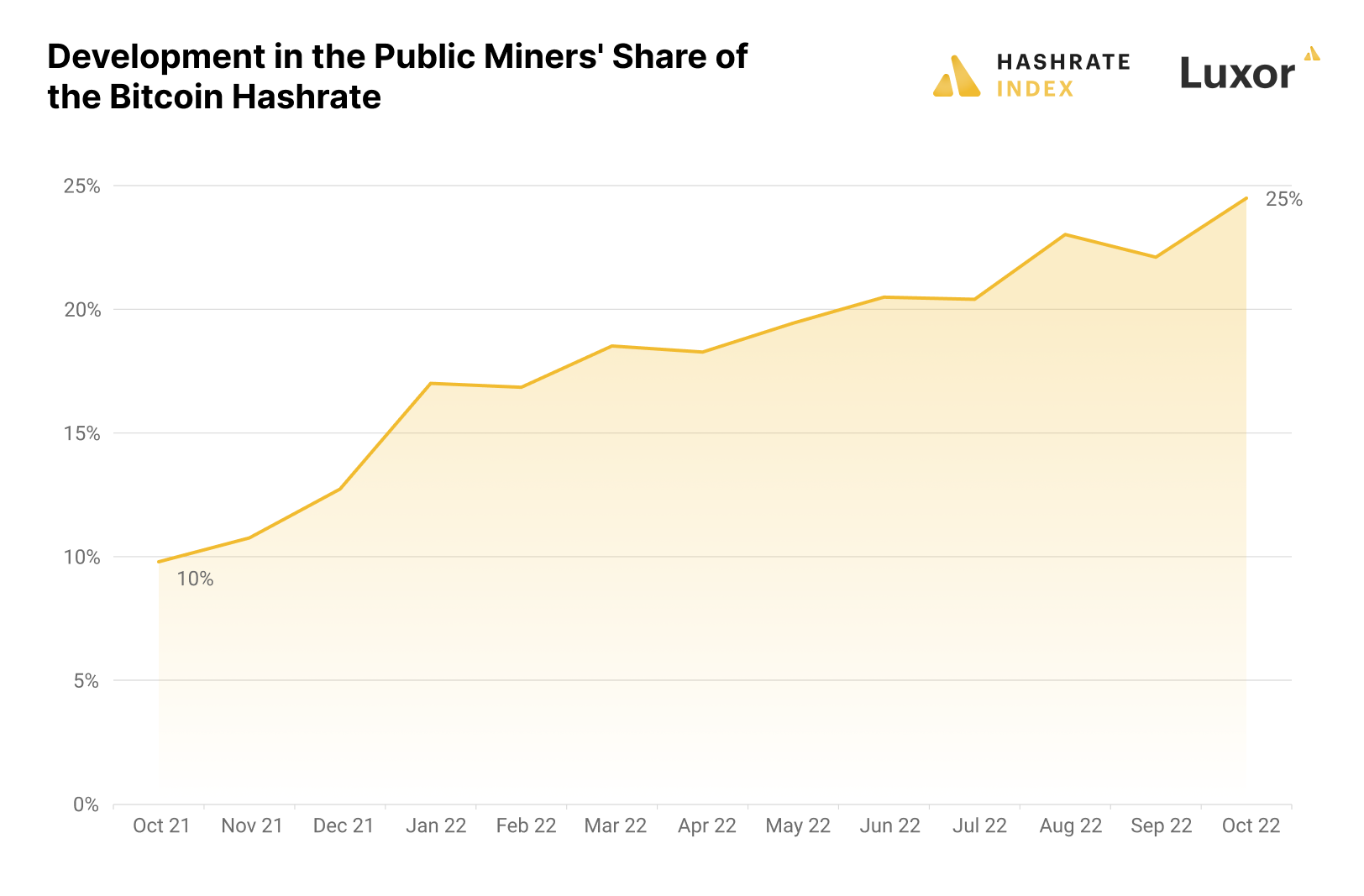 The public miners are gaining an increasing share of Bitcoin’s hashrate