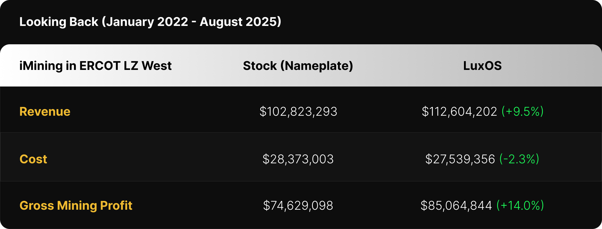 For miners exposed to the volatility of ERCOT’s West Texas zone, stock firmware strategies leave significant money on the table. Intelligent Mining turned this risk into opportunity, delivering more hashrate, lower costs, and ultimately stronger margins.