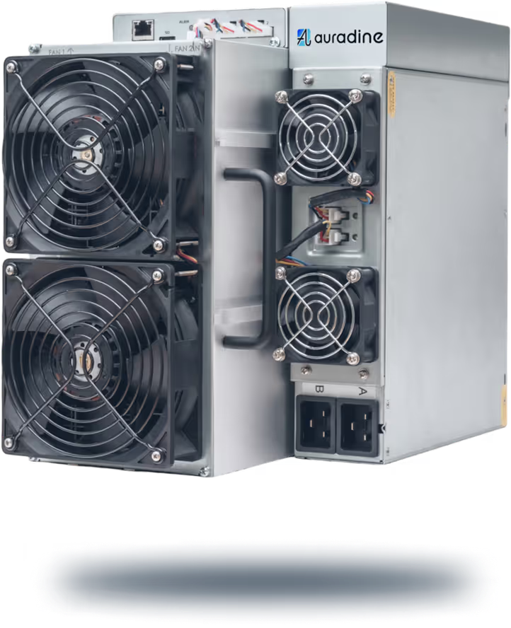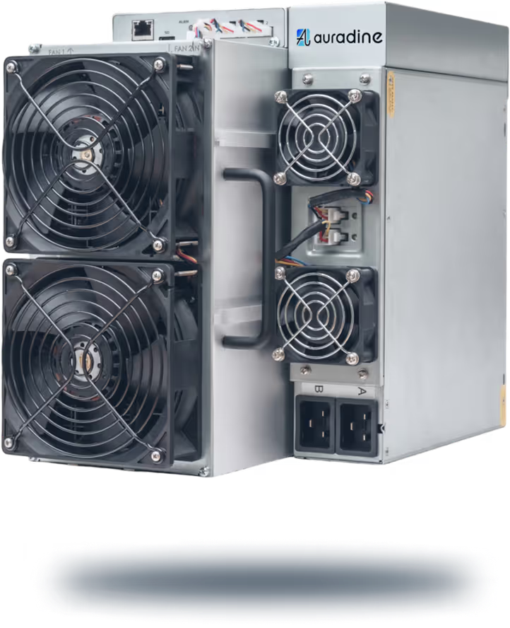 The Teraflux AT2880 is Auradine’s flagship air-cooled model, producing 180 TH/s with an efficiency of 16.0 J/TH, consuming around 2,880 watts.
